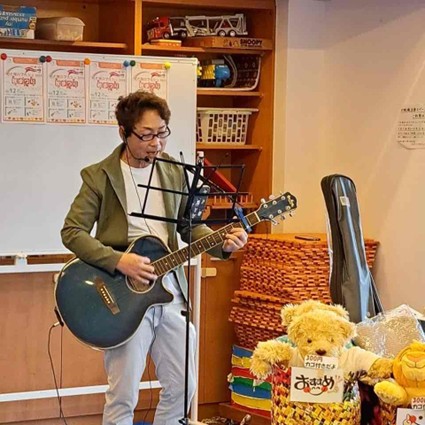 セルフわたあめ、輪投げ、宝探しゲームをしたり、ギター🎸は『ドラえもん』や『100%元気』『津軽海峡冬景色』の曲に合わせてタンバリンを叩いたりしました🎶