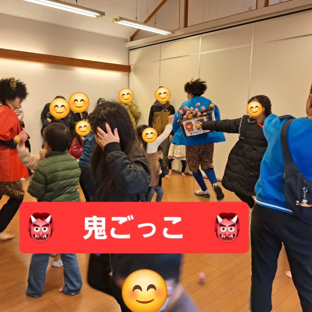 2025年2月2日。当日は寒い雨となり、室内で開催しました。それにもかかわらず、たくさんの親子連れが参加してくれて、大盛況でした。鬼さんと一緒に餅つきをしたりお雑煮で温まったりといい節分となりました。みんなで力を合わせ福を呼び込めたと思います (この投稿は2025.02.16のものを再UPしています)