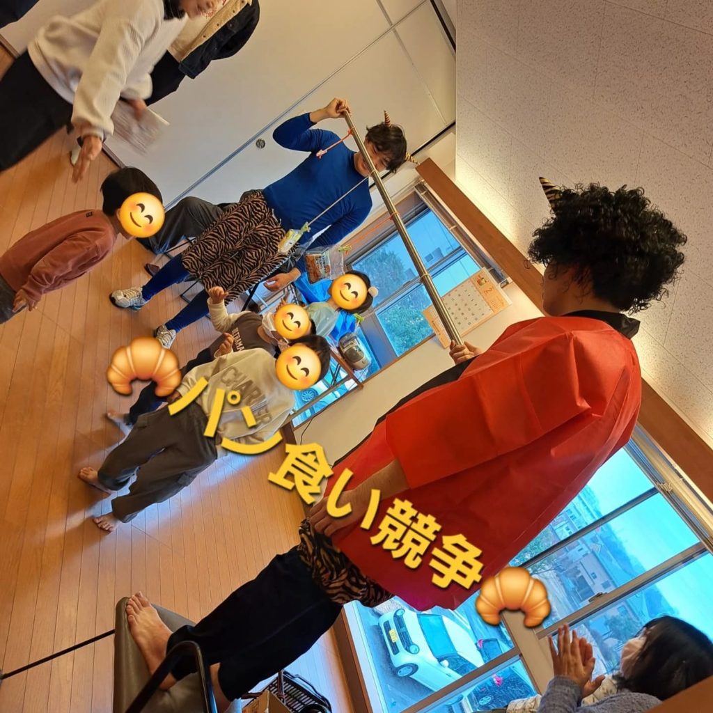 ★パン食い競争は、お目当てのパンを目指してケンケンパで一生懸命進み、狭いスペースでしたが、大人も子供も大盛り上がり